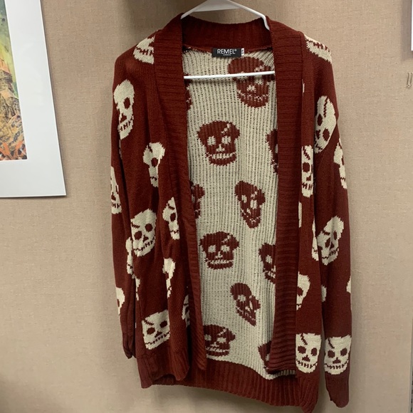 Remel London Sweaters Rebel London Maroon And Light Khaki Skull Cardigan Sm Poshmark